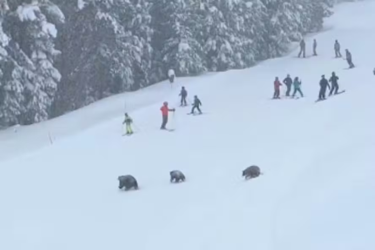 Um grupo de três ursos surpreendeu esquiadores ao atravessar correndo as pistas de uma estação de em North Lake Tahoe,...