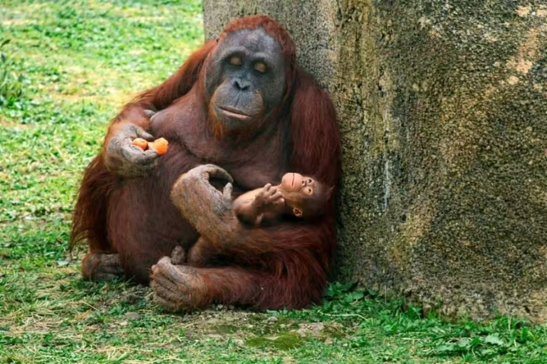 Um filhote de orangotango-de-bornéu, espécie classificada como ameaçada de extinção, nasceu no Zoo Aquarium de Madri, na Espanha, no último...