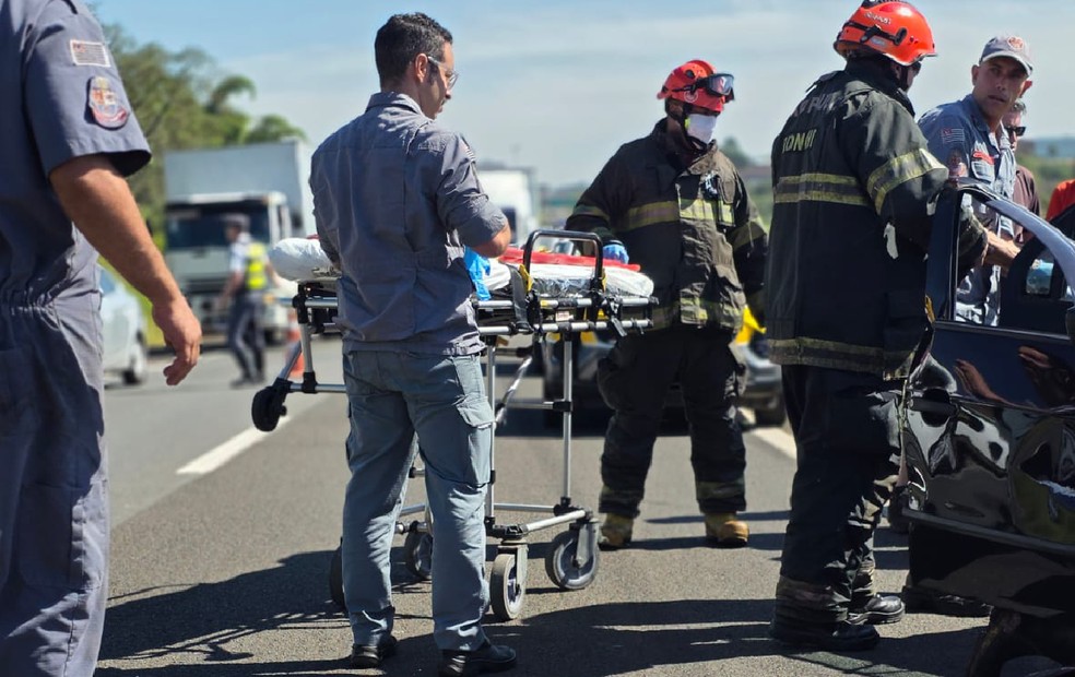 Equipes do Corpo de Bombeiros foram acionadas para o resgate. Com o impacto, a parte dianteira do carro ficou destruída, e foi necessário retirar vítimas presas às ferragens.
