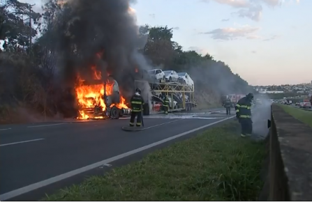 Incêndio em caminhão-cegonha prejudica tráfego na Rodovia Marechal Rondon