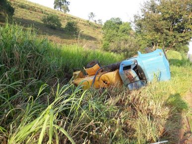 Motorista fica ferido ao tombar caminhão na rodovia Eduardo Saigh