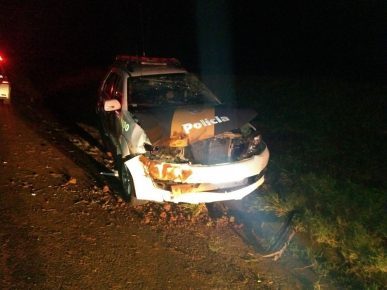 Caminhoneiro perde o controle e bate em viatura da Polícia Rodoviária