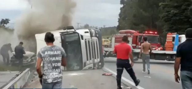 Duas crianças morreram depois que um caminhão carregado de doces tombou sobre um carro e pegou fogo no km 43 da rodovia Presidente Tancredo Neves, entre Francisco Morato e Franco da Rocha na tarde deste sábado (31). Ao todo três crianças estavam dentro do carro. A terceira criança foi levada pelo helicóptero Águia para o […]