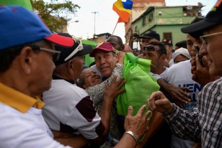 “Queremos frango, arroz, banana!”, grita uma mulher de uma varanda na comunidade de Petare para Henri Falcón, o solitário opositor que tenta substituir o presidente venezuelano Nicolás Maduro, a quem chama de “candidato da fome”. Escoltado por simpatizantes, o militar na reserva de 56 anos lidera uma caravana na empobrecida favela do oeste de Caracas, […]