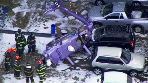 Helicóptero cai no estacionamento da RedeTV! em Osasco