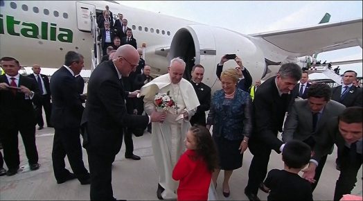 O Papa Francisco chegou na noite desta segunda-feira (15) ao Chile, onde fará uma visita de três dias. O Papa foi recebido pela presidente Michelle Bachelet e três crianças, que lhe entregaram flores, assim como membros da Igreja e outras autoridades. O forte vento levou Francisco a tirar o solidéu ao desembarcar do avião. Durante […]
