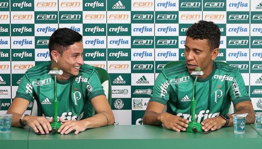 Palmeiras apresenta ex-rivais Diogo Barbosa e Marcos Rocha