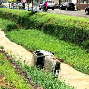 Motorista perde controle da direção e carro cai em rio de Lins