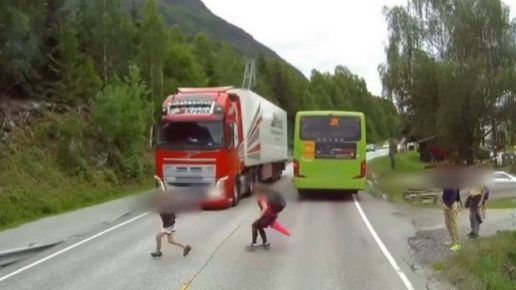 Um caminhoneiro evitou uma tragédia por uma questão de centímetros, em Oslo, na Noruega. Um vídeo que circula pelas redes sociais mostra quando jovens descem de um ônibus escolar e tentam atravessar a estrada sem perceber que um caminhão se aproxima no sentido contrário da via expressa. Uma menina entra correndo na frente do veículo, […]