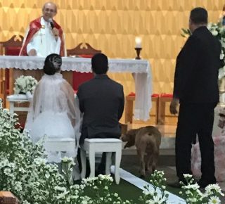 Os noivos eram Luiza Freitas e Lucas Adalício, mas a estrela do casamento foi o pit bull Hulk, que invadiu a igreja do bairro São Cristóvão, na Zona Leste de Teresina, na quinta-feira (12). O cachorro entrou na igreja, assistiu à celebração e à apresentação da banda e posou para fotos como se fosse um […]