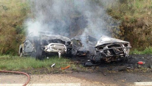 Carros incendeiam após colisão com um morto na BR-116