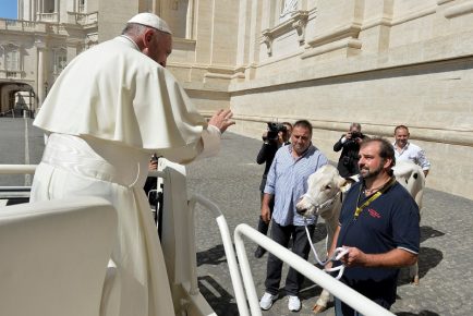Papa Francisco é ‘apresentado’ a vaca no Vaticano