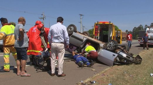 Motorista fica ferido após carro capotar na rodovia Antônio Romano Schincariol