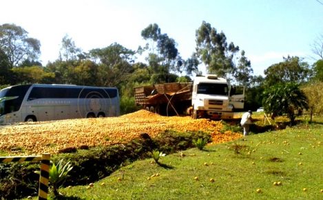 Acidente com caminhão de laranja fecha parte da Rodovia João Ribeiro de Barros