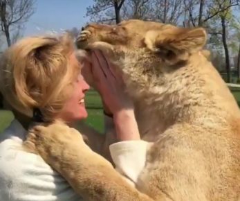 Após 7 anos separadas, leoas têm reação emocionante ao reencontrar mulher que as adotou; veja vídeo