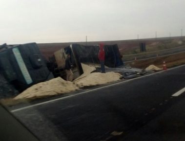 Caminhão carregado de açúcar tomba na Rodovia Marechal Rondon