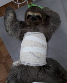 Bicho-preguiça é operada após levar choque em rede elétrica de no interior de SP
