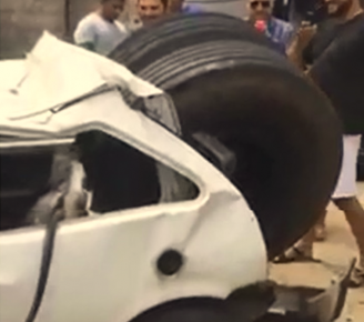 Roda dupla de caminhão escapa e destrói carro na rodovia BR-222