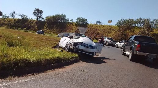 Carro capota e derruba placa de trânsito na rodovia Eduardo Saigh