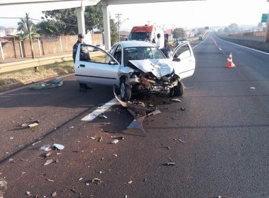Motorista bate em defesa metálica na Rodovia Comandante João Ribeiro de Barros e estrutura atravessa o carro