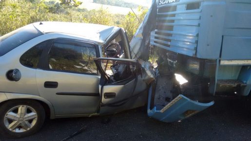 Motorista perde controle da direção e carro bate de frente em caminhão na rodovia SP-281