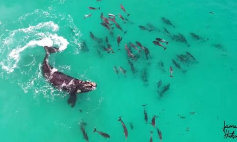 A cena é curiosa: uma imensa baleia jubarte cercada por dezenas de golfinhos, aparentemente brincando. O flagrante foi capturado pelo cinegrafista australiano Jaimen Hudson, em Austrália Ocidental, e publicada no Facebook, onde já alcançou quase 500 mil visualizações. Hudson, de 25 anos, é autor de outros vídeos que viralizaram na internet. Com o apoio de […]