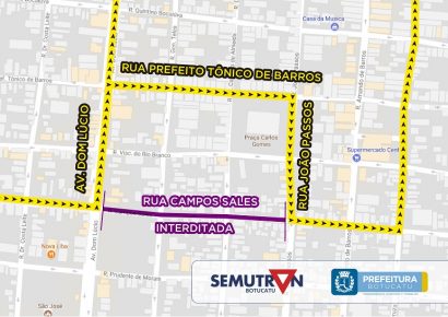 A Secretaria Municipal de Infraestrutura informa a interdição da Rua Campos Sales, programada para esta quarta-feira, 12, a partir das 7 horas da manhã, no trecho compreendido entre a Avenida Dom Lúcio e a Rua João Passos, região central de Botucatu. A interdição se faz necessária para o recapeamento asfáltico das três quadras que ficarão […]