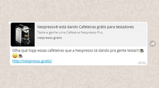 Novo golpe pelo WhatsApp promete máquina Nespresso