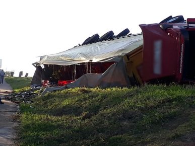 Caminhão carregado com cerveja tomba na Rodovia Vicente Palma
