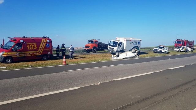 Mulher fica ferida após capotar veículo na Rodovia do Açúcar