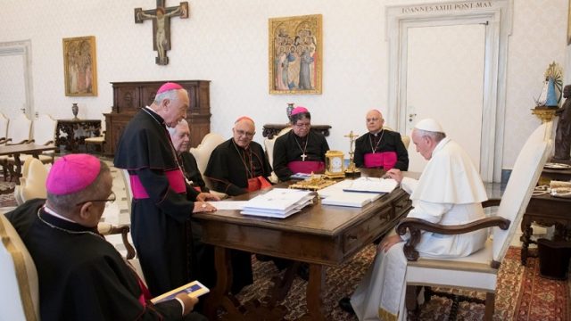 Presidente da Conferência Episcopal venezuelana, cardeais e bispos conversam com o papa Francisco no Vaticano (Foto: Osservatore Romano) A hierarquia da Igreja católica venezuelana se reuniu nesta quinta-feira (8) com o papa Francisco, no Vaticano, para informar o pontífice sobre o agravamento da situação política e social no país latino-americano e pedir que ele advogue […]