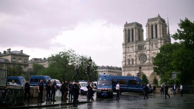 Homem fere policial com martelo em frente à catedral Notre-Dame de Paris