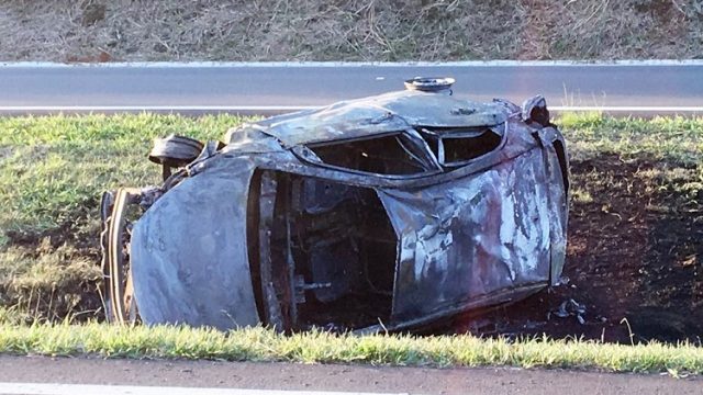 Carro capota e pega fogo na Rodovia Luiz de Queiroz