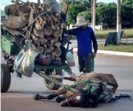 Cavalo ‘desmaia’ por não suportar carga em carroça e dono é detido após foto viralizar