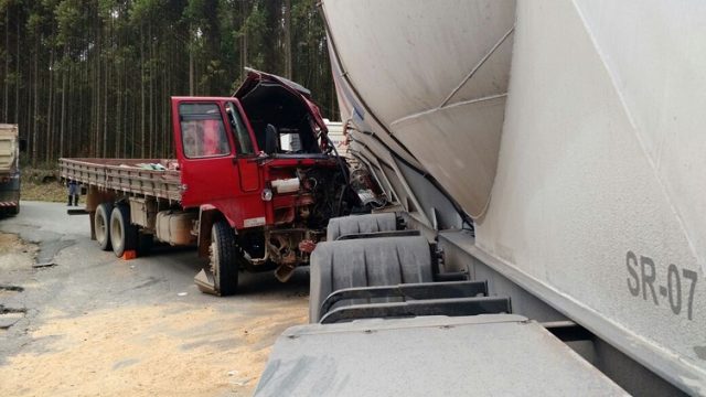 Batida entre dois caminhões causa congestionamento na Rodovia Eduardo Saigh