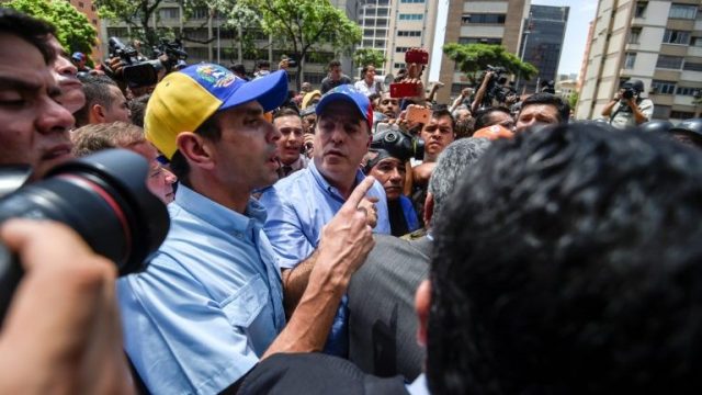 O governador de Miranda e líder da oposição, Henrique Capriles (2º à esq.), e o presidente da Assembleia Nacional, Julio Borges (3º à esq.), durante protesto contra Nicolás Maduro, em Caracas (Foto: Reprodução) O presidente venezuelano, Nicolás Maduro, se encaminha a tramitar sozinho uma reforma constitucional, depois que seus adversários se recusaram a participar no […]