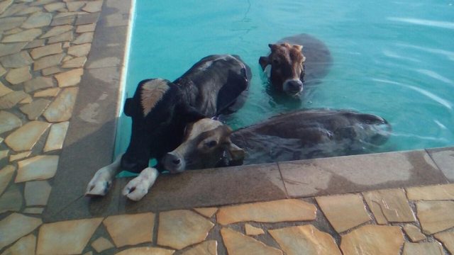 Bombeiros resgatam três vacas que caíram em piscina de clube em MG