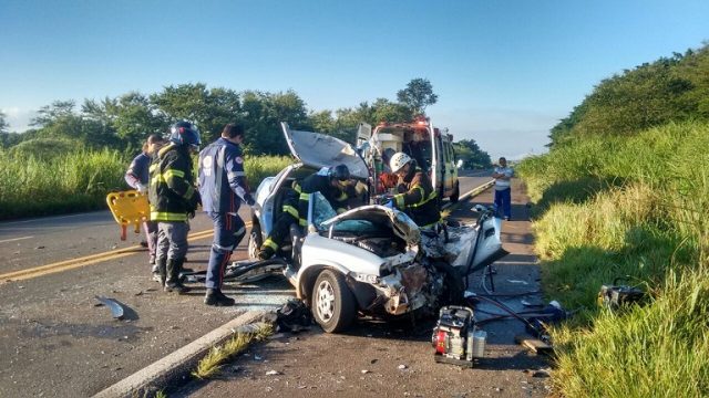 Motorista fica gravemente ferida após colisão frontal entre carro e ônibus