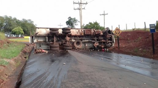 Caminhão carregado com álcool tomba e carga se espalha por estrada em Águas de Santa Bárbara