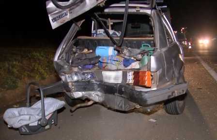 Bebê e criança são salvos por cadeirinha em acidente com 5 feridos na rodovia SP-225