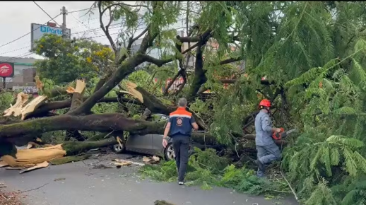 Árvore de grande porte desaba sobre carro em movimento no interior de SP