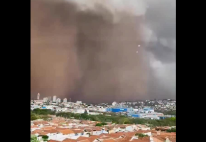 Uma enorme coluna de areia foi registrada por moradores de Lençóis Paulista (SP), nesta segunda-feira (22), engolindo parte da cidade. O fenômeno também atingiu outras regiões do estado de SP, como Bauru, Presidente Prudente, Araçatuba e São José do Rio Preto (SP). Imagens feitas do alto de um prédio mostram a nuvem cobrindo parte da cidade de Lençóis Paulista. Veja o vídeo. […]