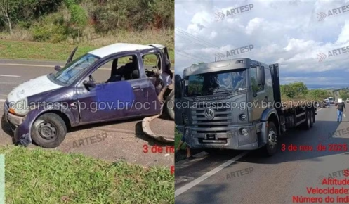 Passageiro morre após batida entre caminhão e carro na Rodovia João Mellão, em Itaí