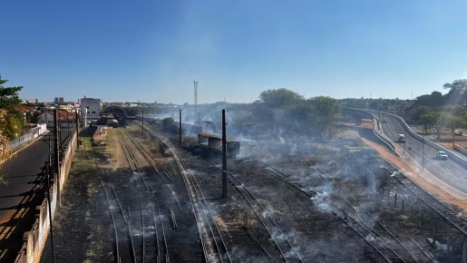 Incêndio atinge área de trilhos perto da antiga estação ferroviária de Bauru