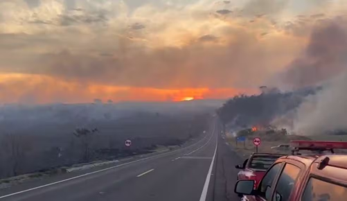 Incêndio em área de mata às margens de rodovia interdita via por duas horas no interior de SP