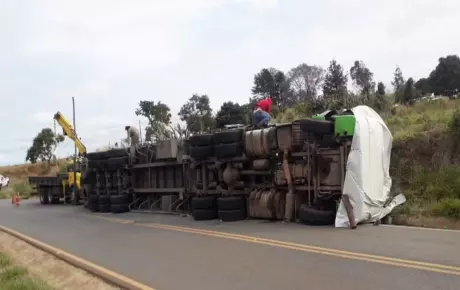 Caminhão tombado interdita estrada vicinal em Coronel Macedo