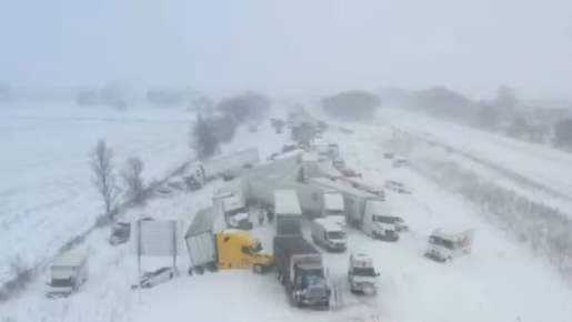 Em meio à neve, engavetamento de quase cem veículos impressiona nos EUA