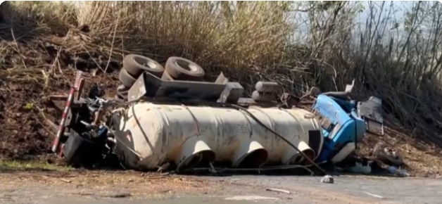 Caminhão com adubo líquido tomba em recuo da serra de São Pedro e mobiliza bombeiros e Defesa Civil