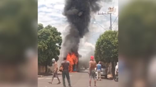 Ônibus de transporte escolar pega fogo em bairro de Lins