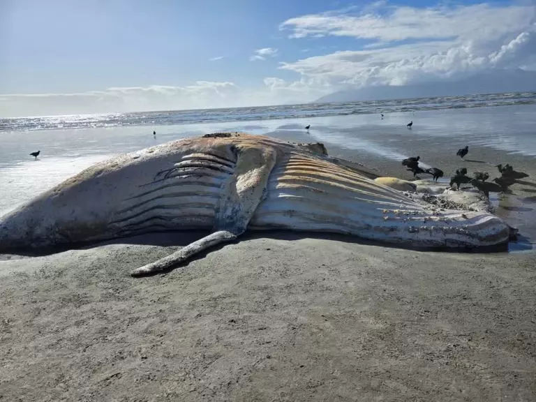 Na cauda da baleia, foram encontrados apetrechos de pesca. No entanto, devido ao estágio avançado de decomposição da carcaça, não foi possível determinar a causa da morte do animal.